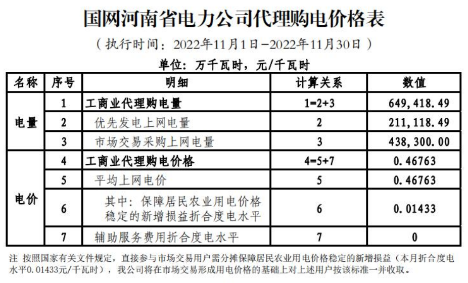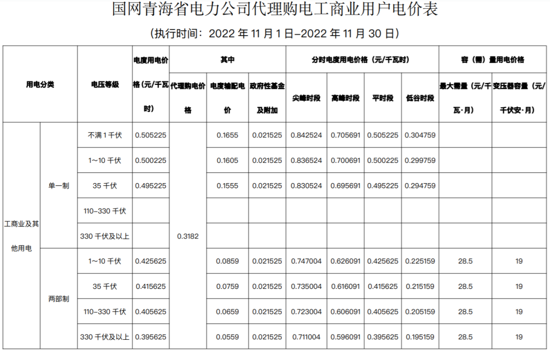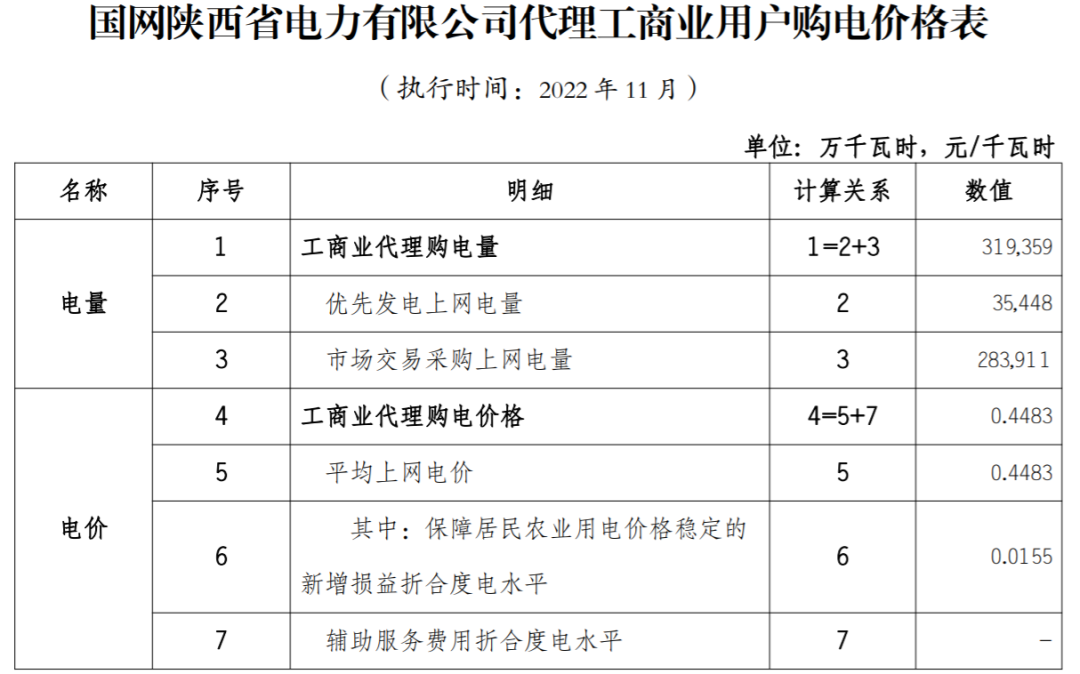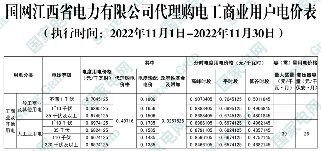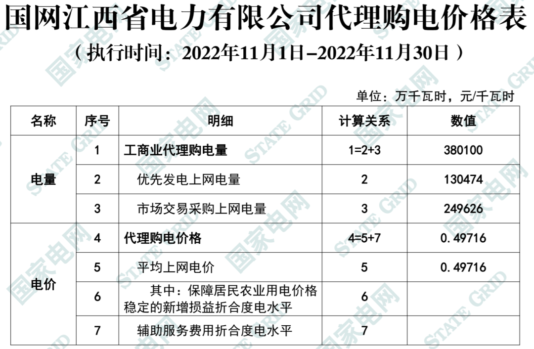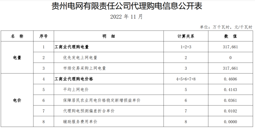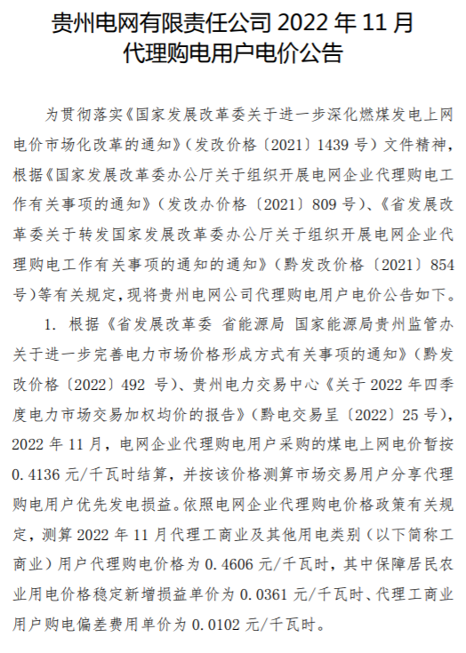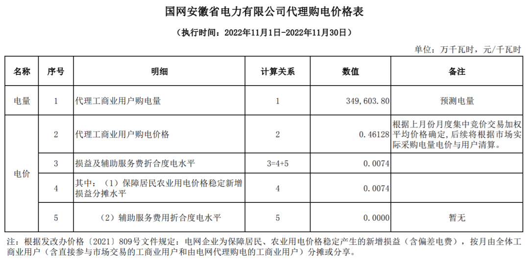 以下附全国各省11月代理购电电价详情: