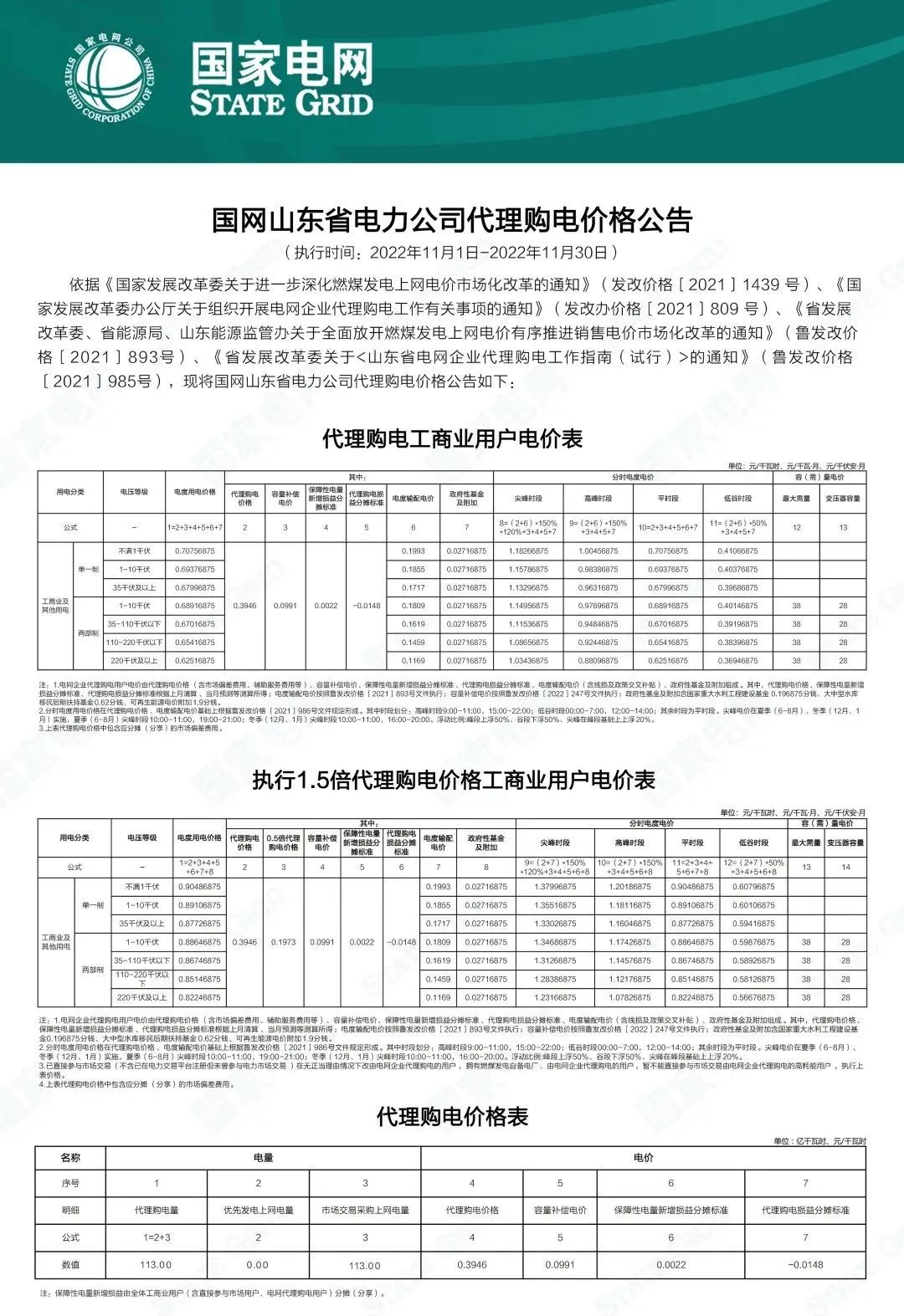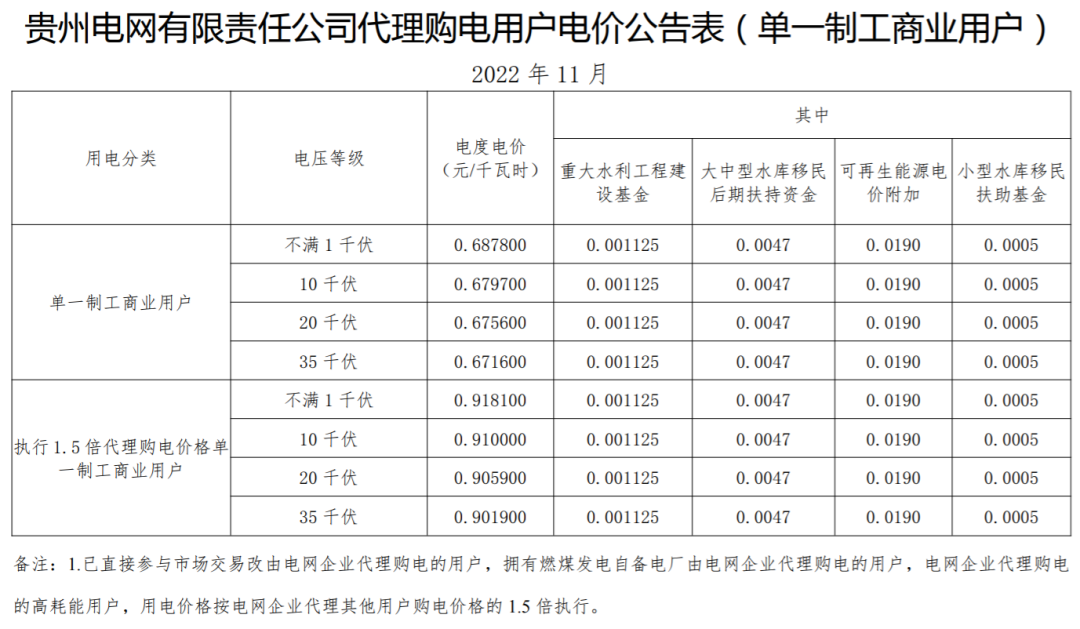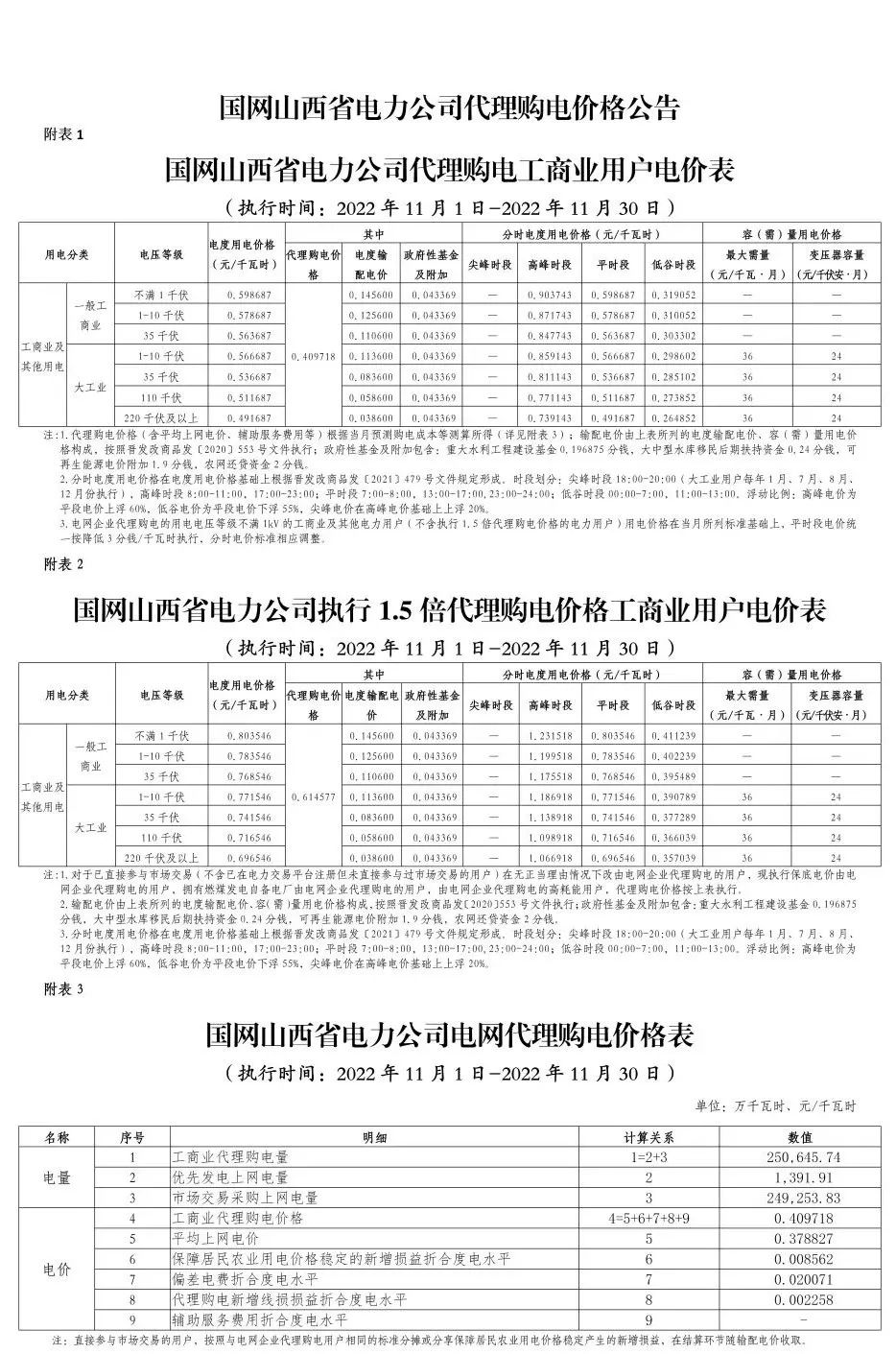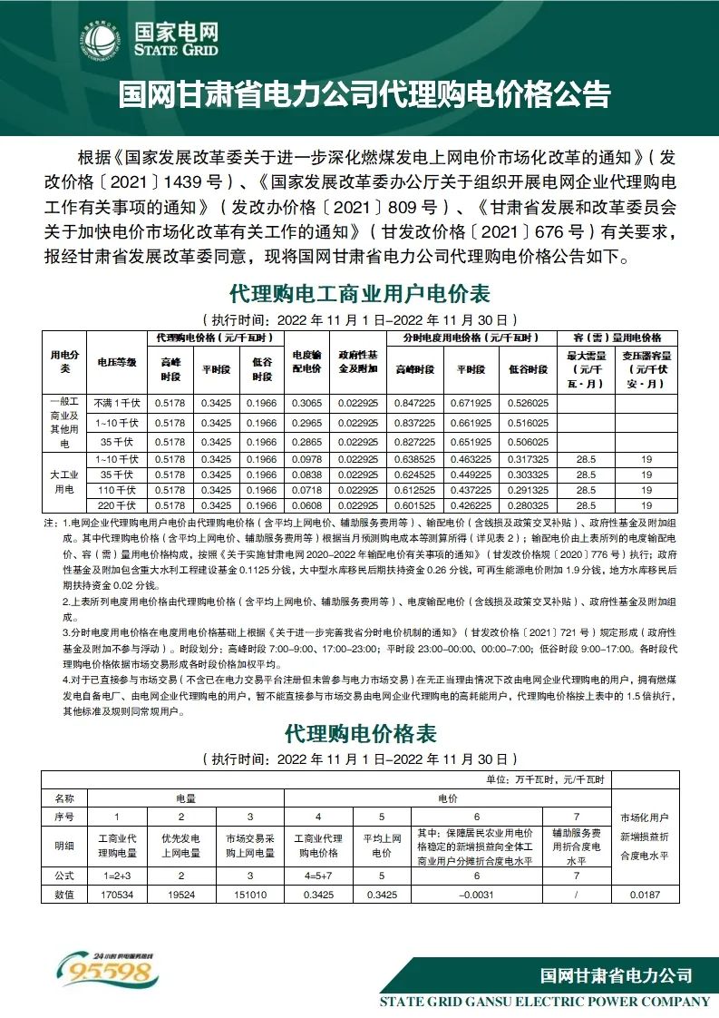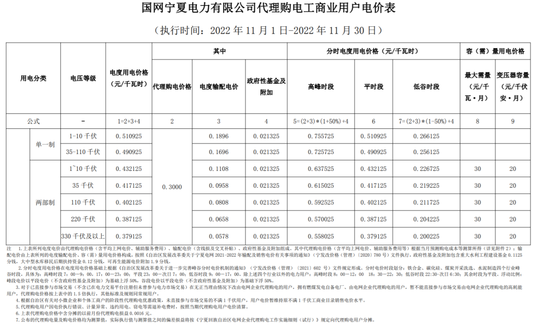 以下附全国各省11月代理购电电价详情: