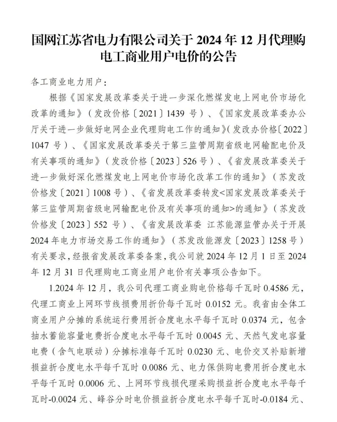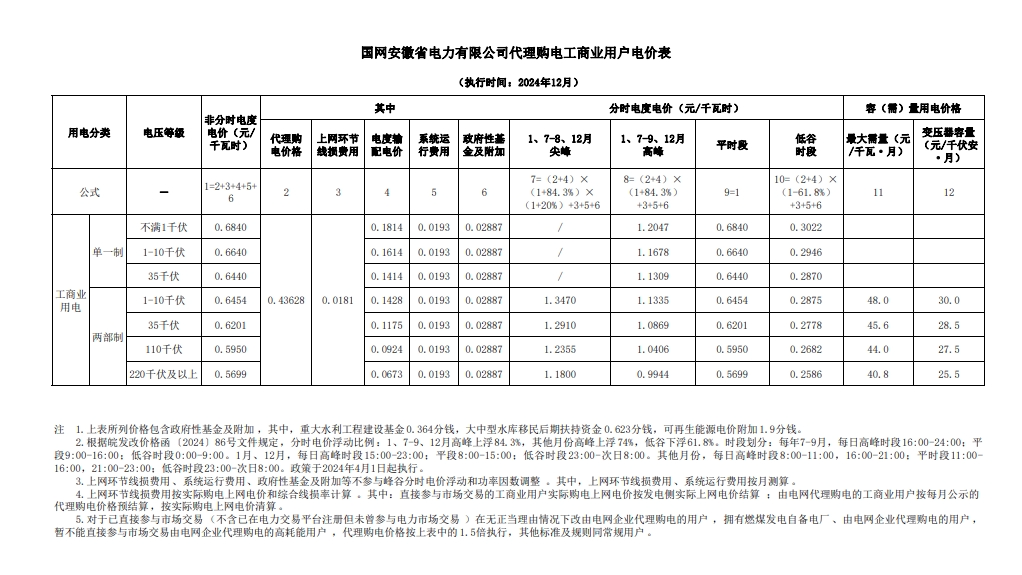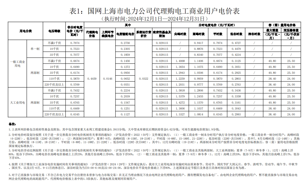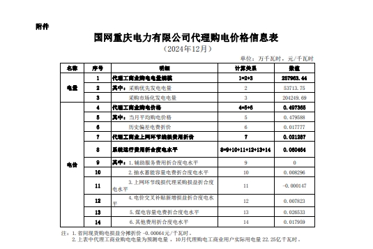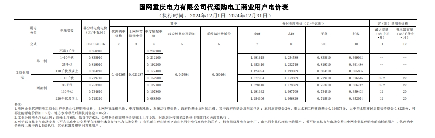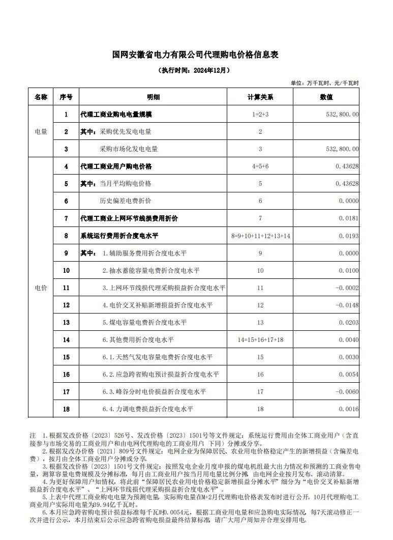 以下为2024年12月各地电网企业代理购电价格表,顺序依次为:江苏、安徽、广东、山东、山西、北京、河北、冀北、浙江、上海、重庆、黑龙江、辽宁、吉林、内蒙古东部、江西、湖北、湖南、青海、宁夏、陕西、天津、甘肃、新疆、广西、海南、贵州、云南、深圳、福建。(河南、四川、内蒙古电力集团暂未公布)