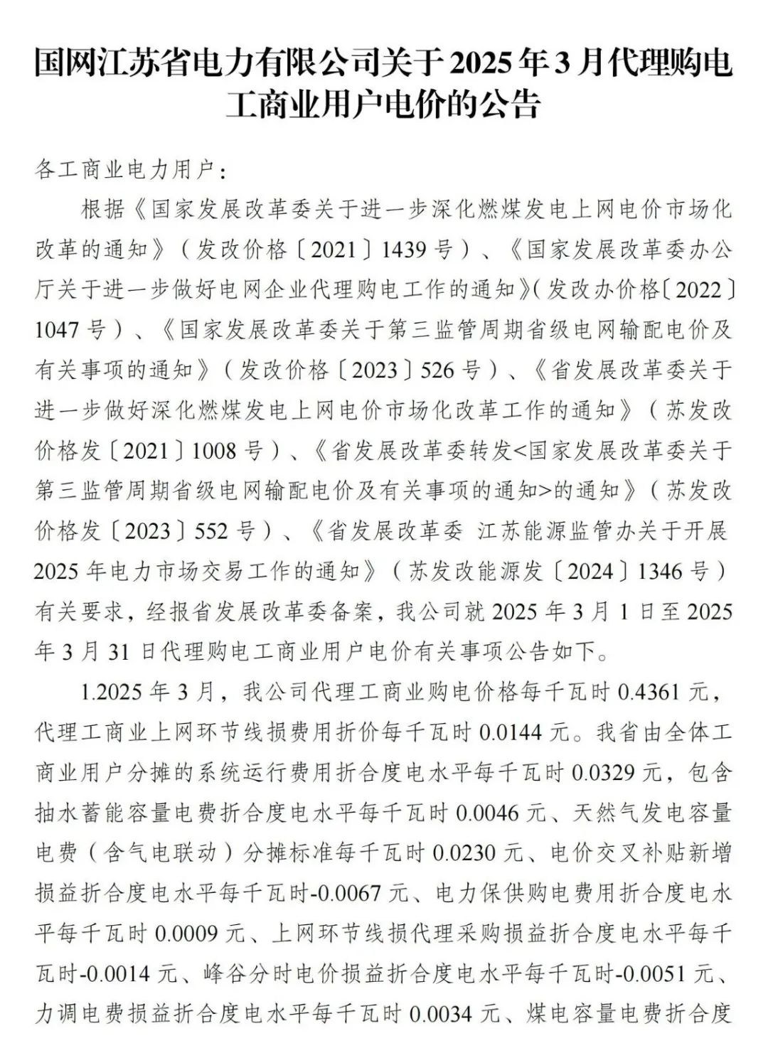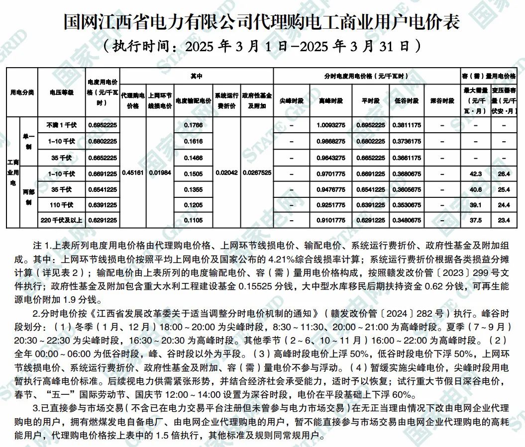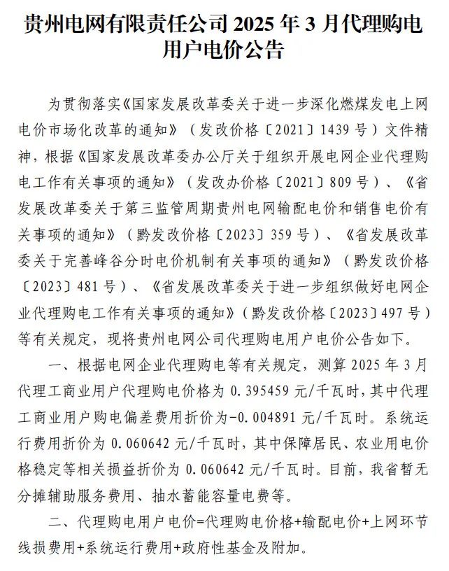 以下为2025年3月各地电网企业代理购电价格表,顺序依次为:江苏、安徽、广东、山东、山西、北京、河北、冀北、浙江、上海、重庆、四川、黑龙江、辽宁、内蒙古东部、江西、湖北、湖南、青海、宁夏、陕西、天津、甘肃、新疆、广西、海南、贵州、云南、深圳、福建。(河南、吉林、内蒙古电力集团暂未公布)