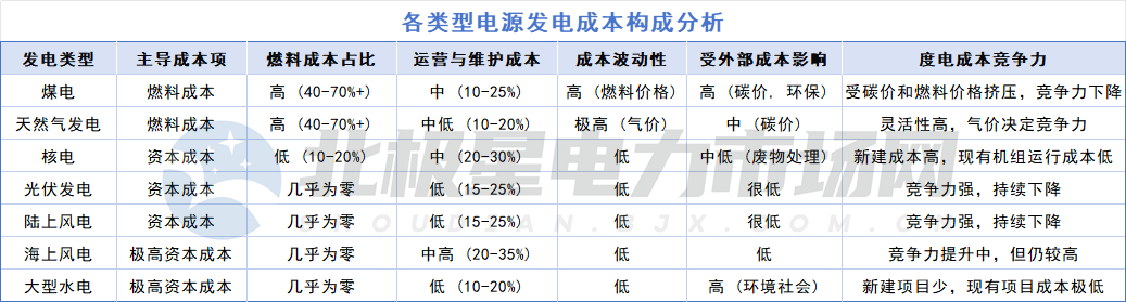 发电成本是影响利润的关键因素,不同发电类型(火电、水电、核电、风电、光伏等)的成本结构差异巨大。