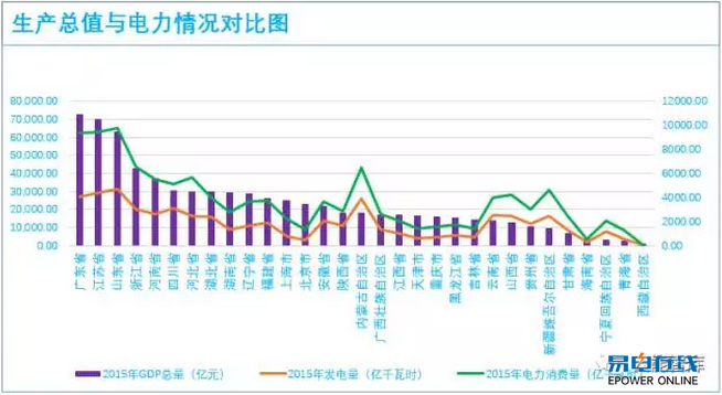 对比2015年数据可以发现,各地存在电力不平衡的问题。