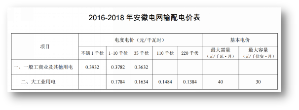 模糊之三:目前已经公布的各省级电网的输配电价表中,又无一例外的包含了电度电价和基本电价,比如下图展示的是安徽的: