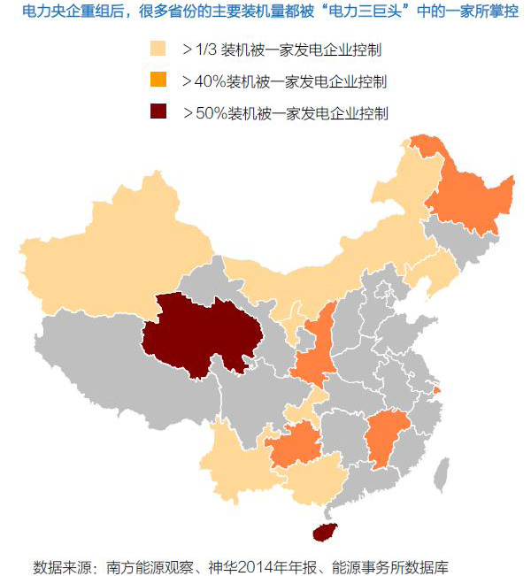 然而,如果我们把视角下沉,从省一级别的角度去看待这场重组,就可以发现,在一些省份,由发电央企重组而产生的三巨头,将会对电力市场产生超出预期的影响。