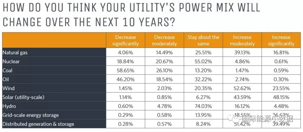 美国Utility Dive机构调查采访了近700家美国电力企业,征询他们未来10年的发电能源结构以及所面临的最大挑战的看法。