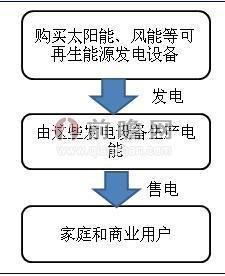 Green Mountain Energy公司客户主要为两个部分,一个家庭用户,向其提供无污染的电力资源;另一个是商业用户,向其提供可再生能源,包括可再生能源证书(REC)、碳补偿和可持续的商业解决方案。Green Mountain Energy公司购买太阳能、风能等可再生能源发电设备,利用这些资源发电,再将电能销售给家庭用户和商业用户,并从中获取利润。