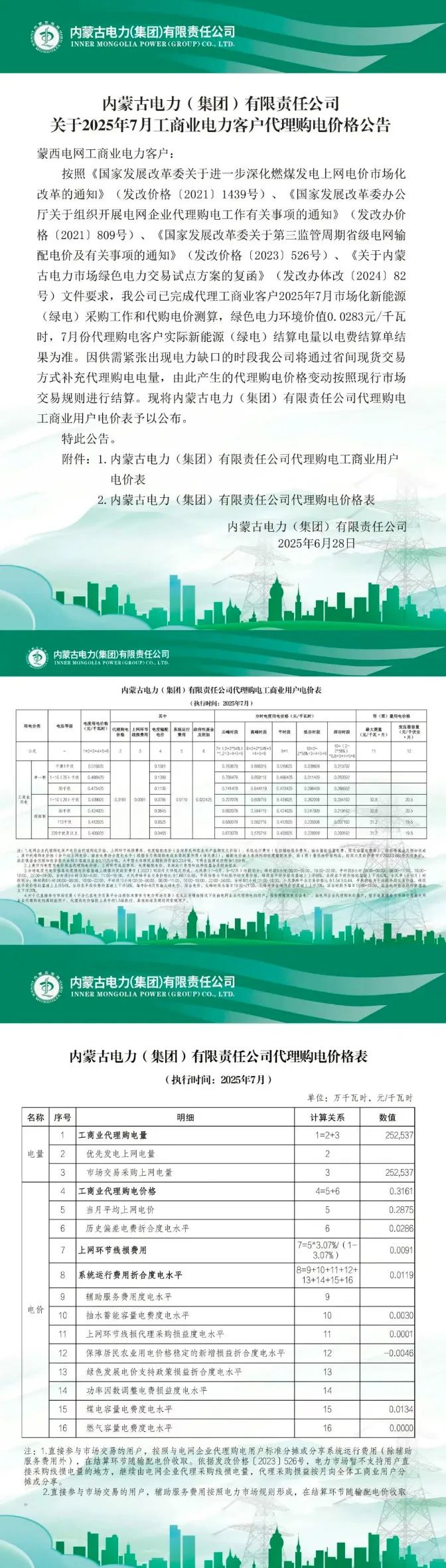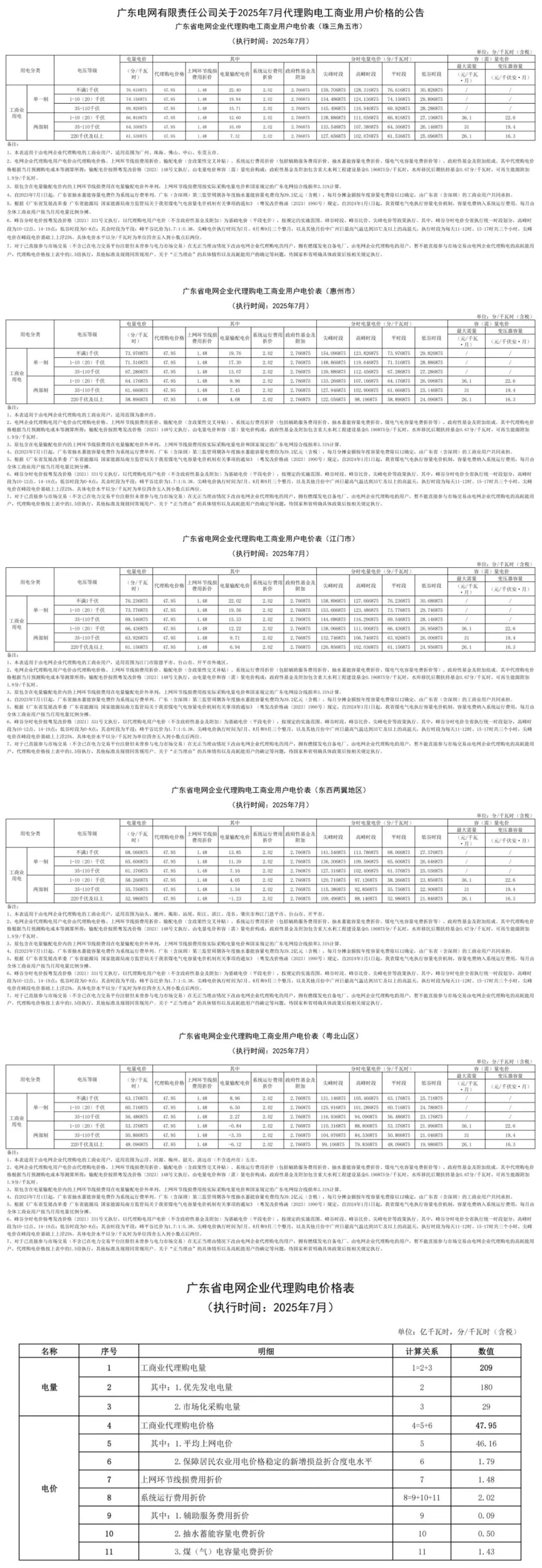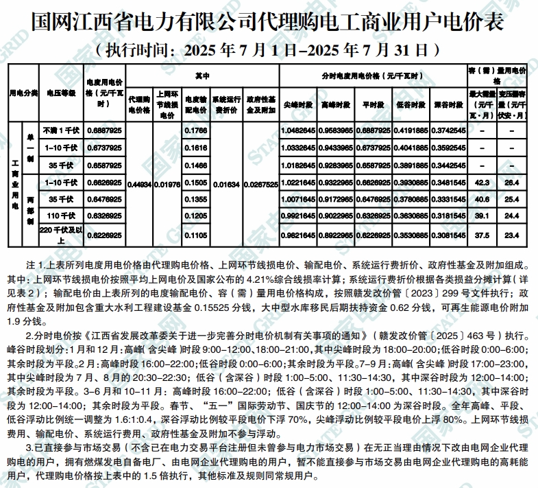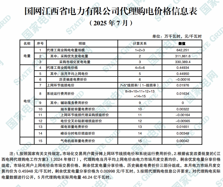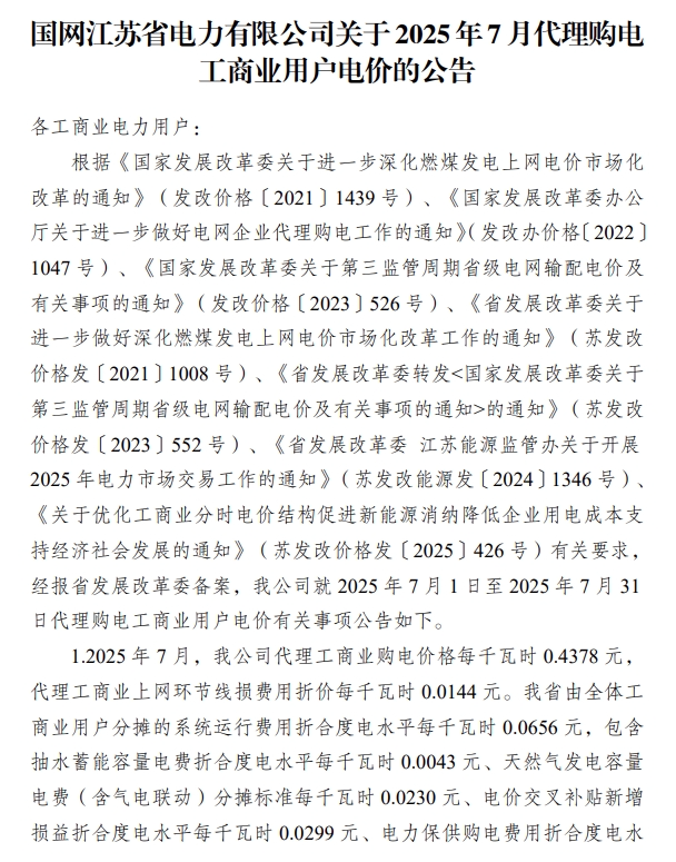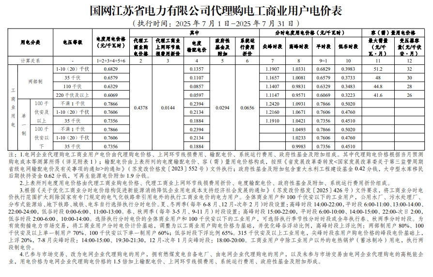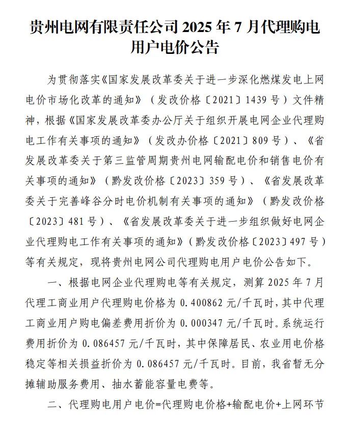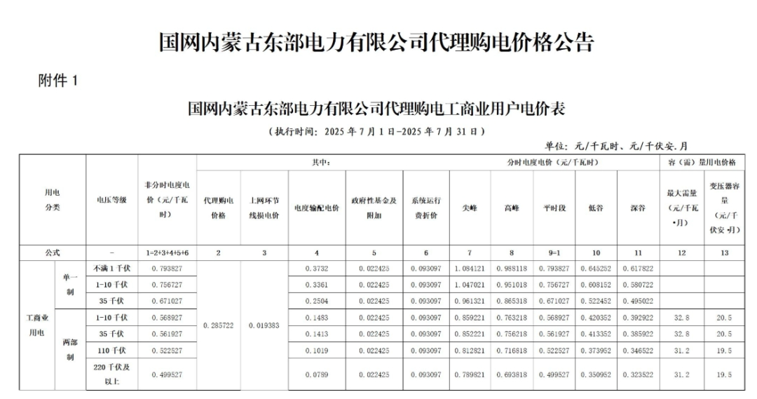以下为2025年7月各地电网企业代理购电价格表,顺序依次为:江苏、安徽、广东、山东、山西、北京、河北、冀北、浙江、上海、重庆、四川、黑龙江、辽宁、吉林、内蒙古东部、内蒙古电力集团、江西、湖北、湖南、青海、宁夏、陕西、天津、甘肃、新疆、广西、海南、贵州、云南、深圳、福建。(河南暂未公布)