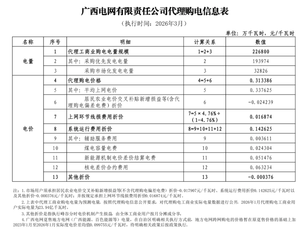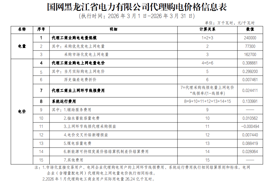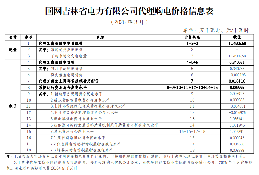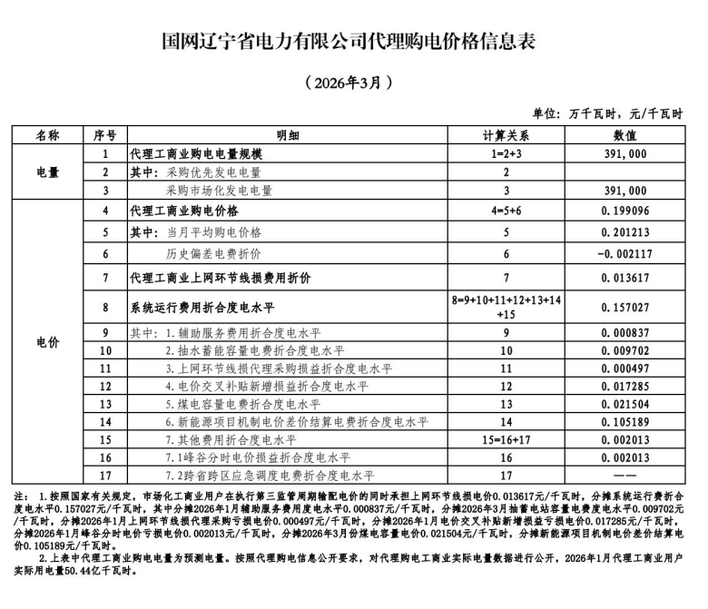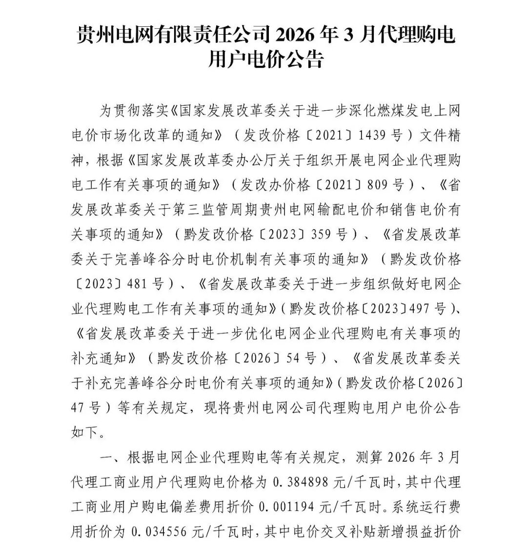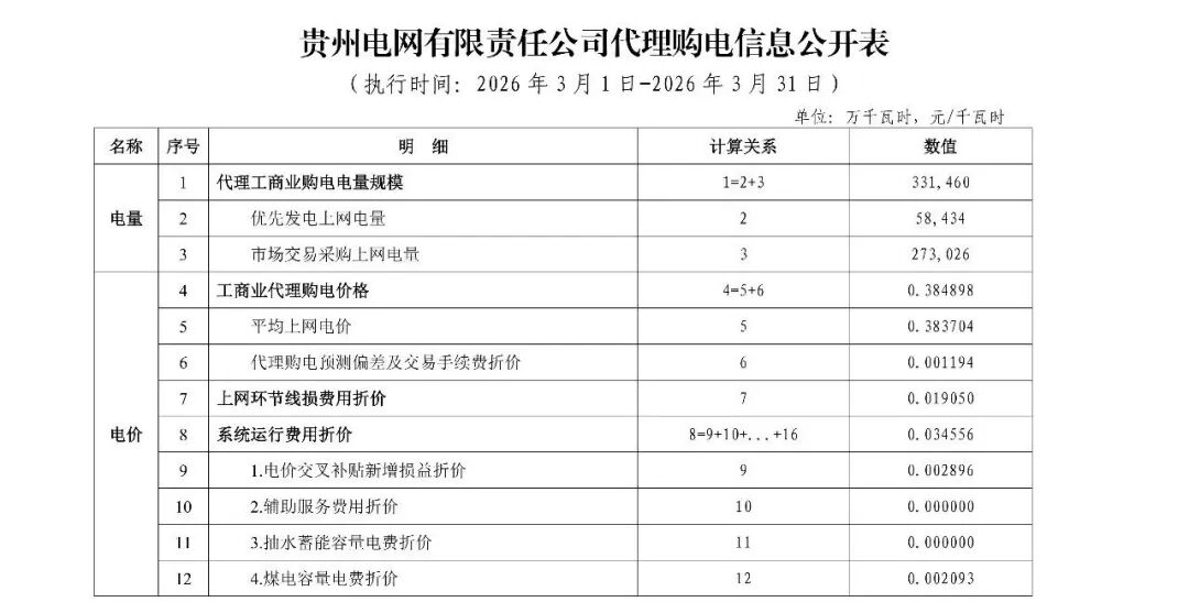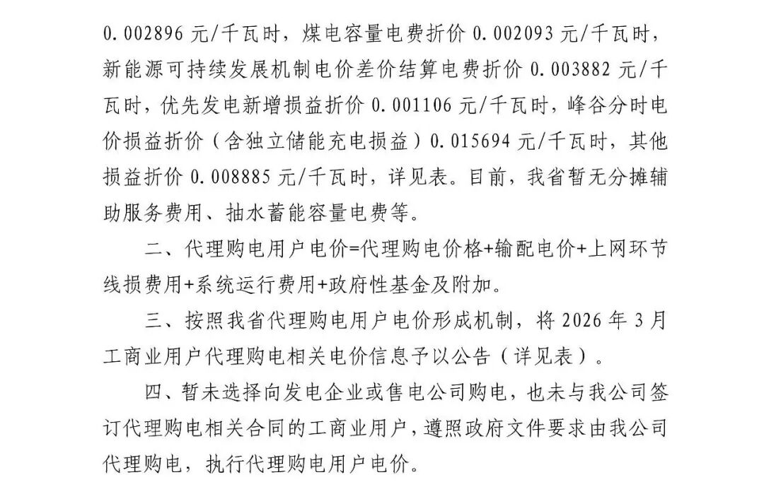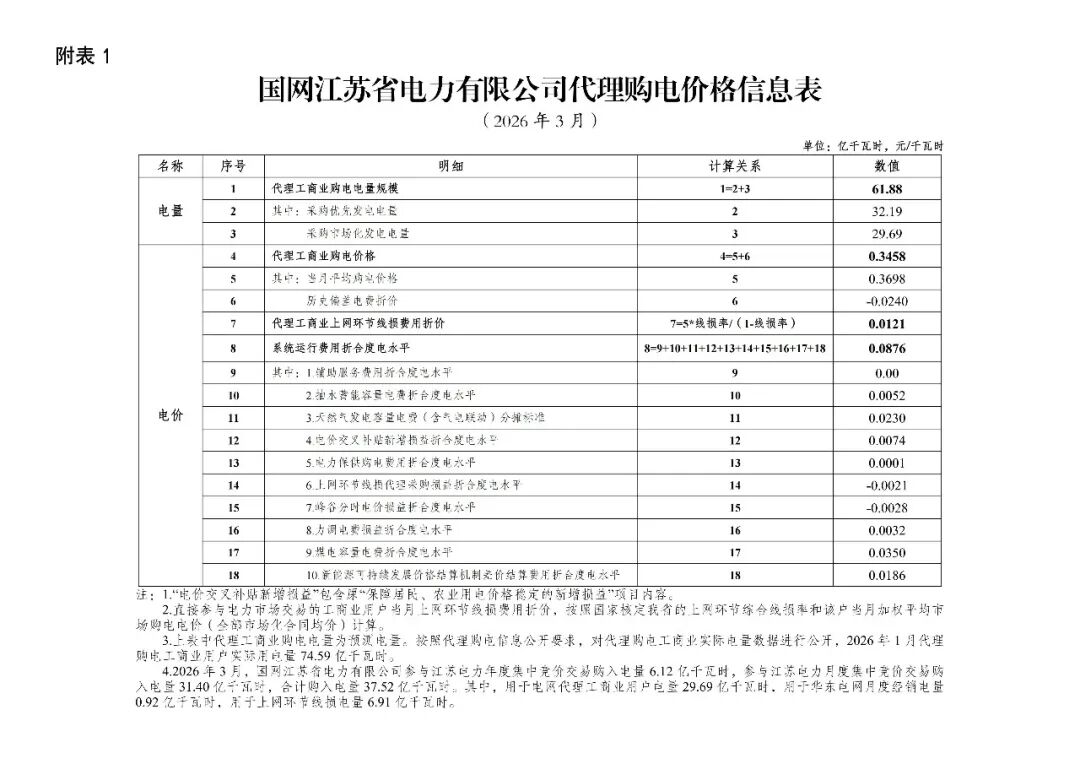 以下为2026年3月各地电网企业代理购电价格表,顺序依次为:江苏、安徽、广东、山东、山西、北京、河北、冀北、浙江、上海、重庆、四川、黑龙江、辽宁、吉林、内蒙古东部、内蒙古电力集团、江西、湖北、湖南、青海、宁夏、陕西、天津、甘肃、新疆、广西、海南、贵州、云南、深圳、福建。(河南暂未公布)