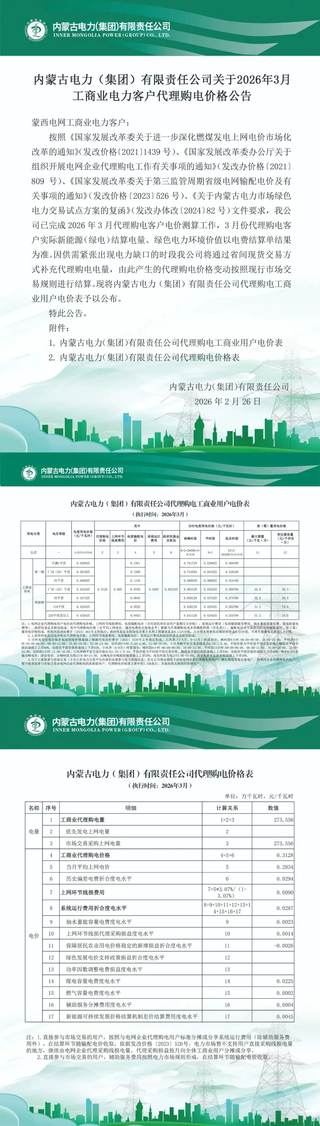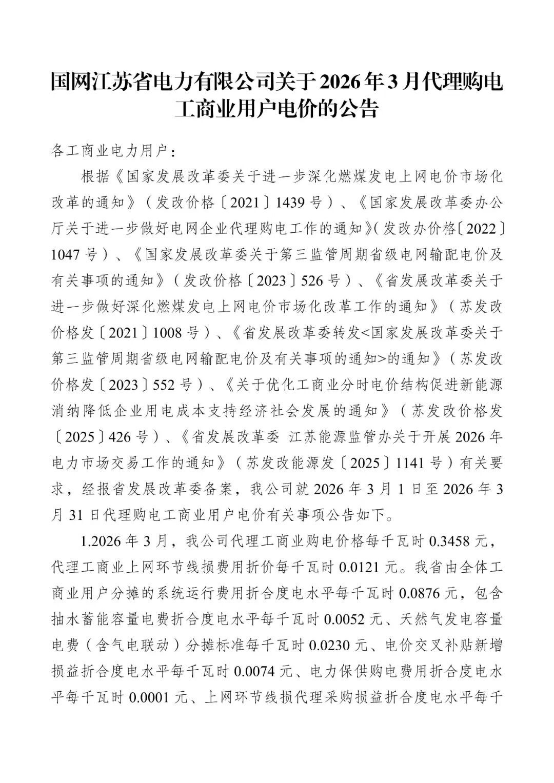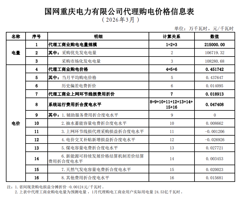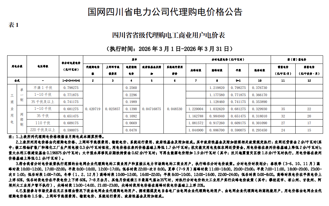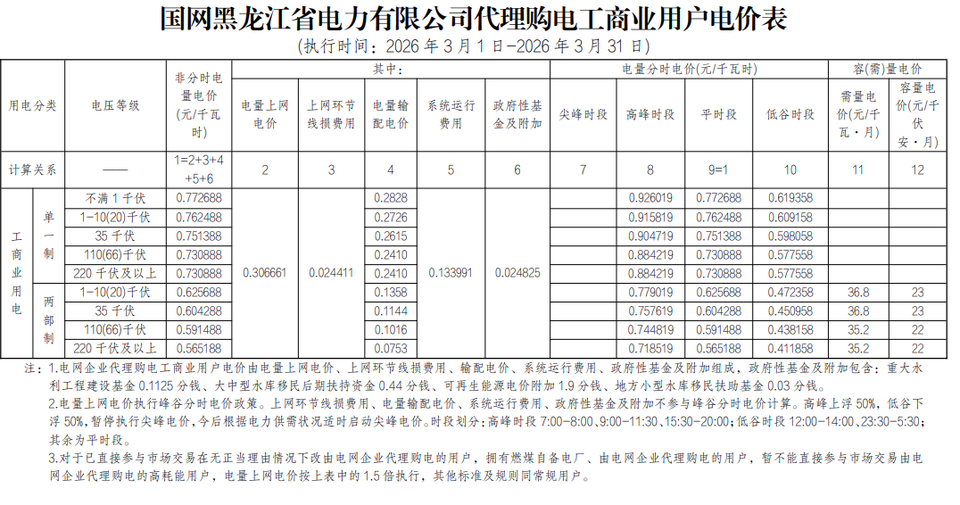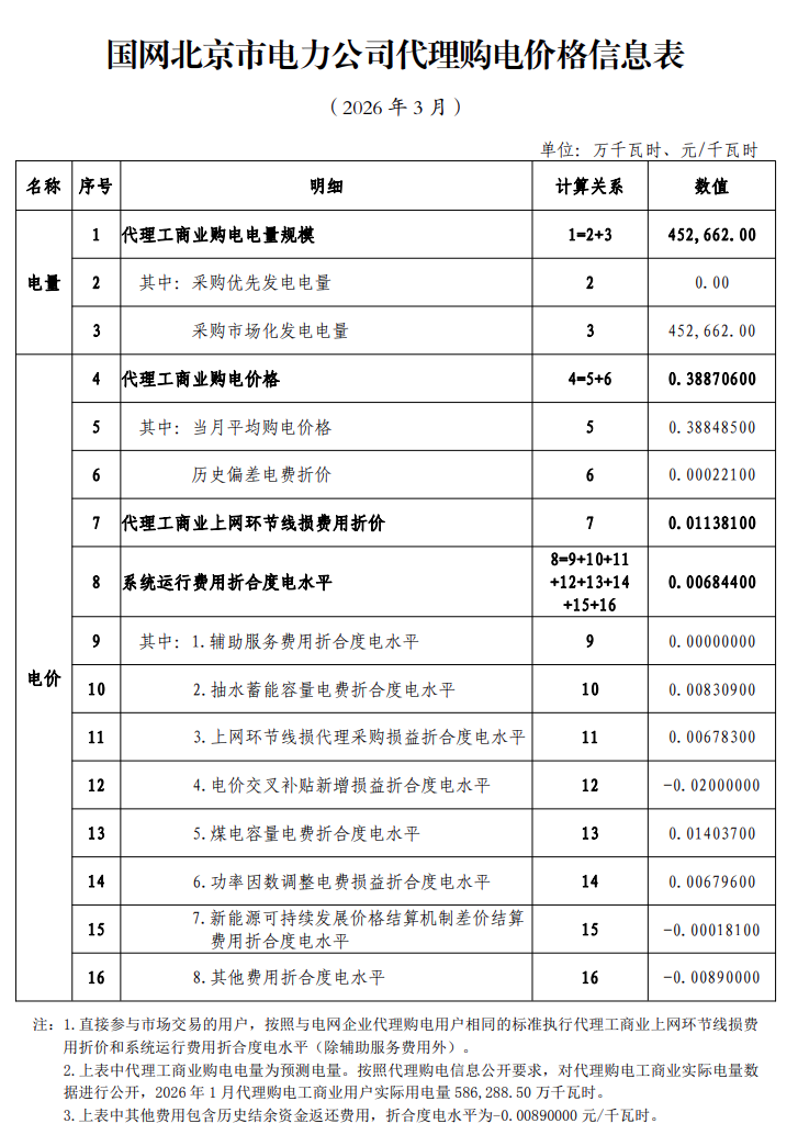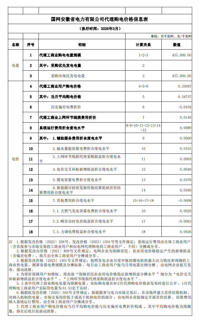 以下为2026年3月各地电网企业代理购电价格表,顺序依次为:江苏、安徽、广东、山东、山西、北京、河北、冀北、浙江、上海、重庆、四川、黑龙江、辽宁、吉林、内蒙古东部、内蒙古电力集团、江西、湖北、湖南、青海、宁夏、陕西、天津、甘肃、新疆、广西、海南、贵州、云南、深圳、福建。(河南暂未公布)
