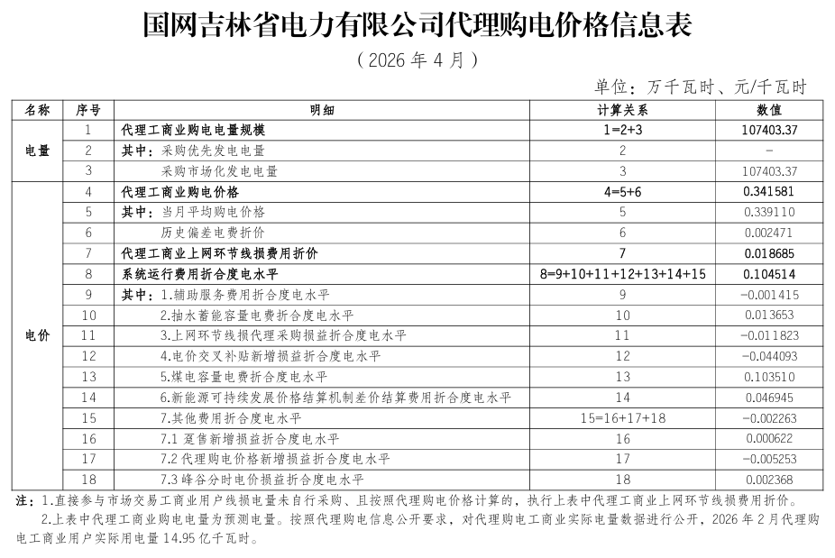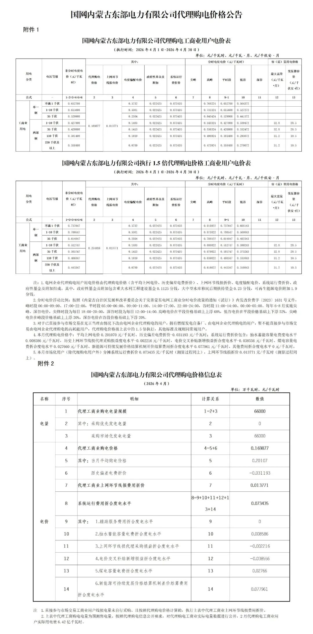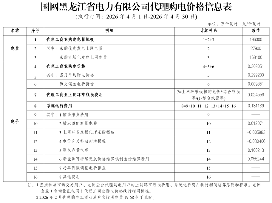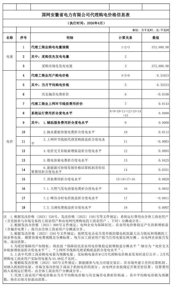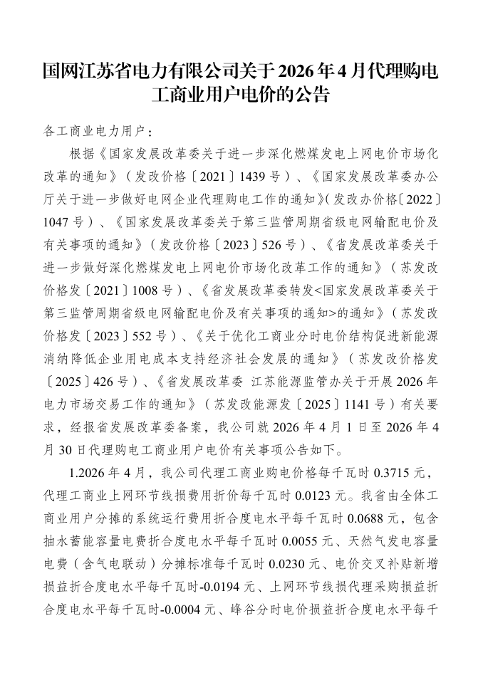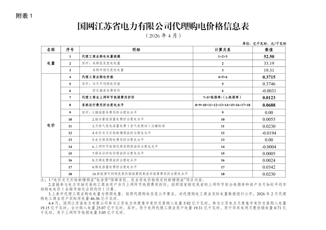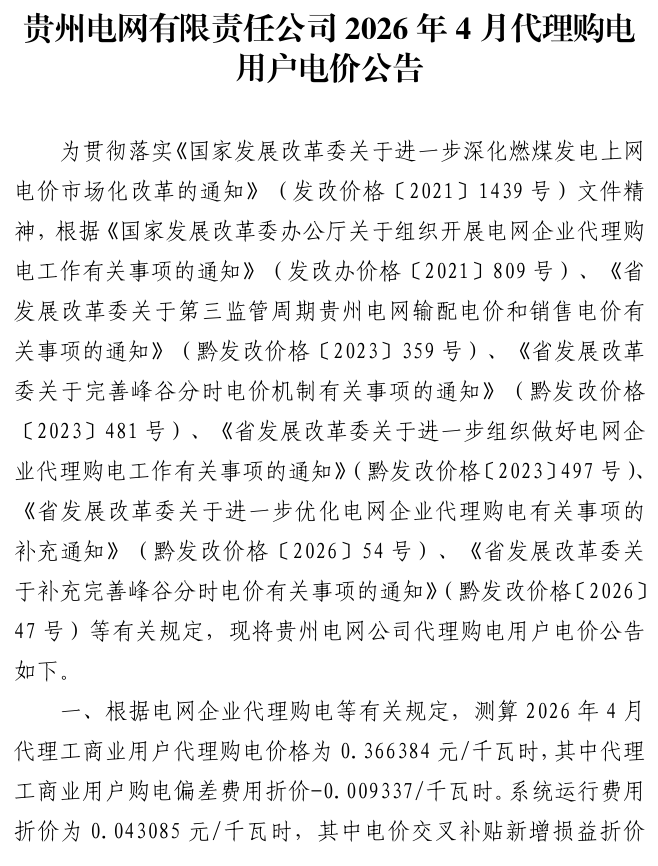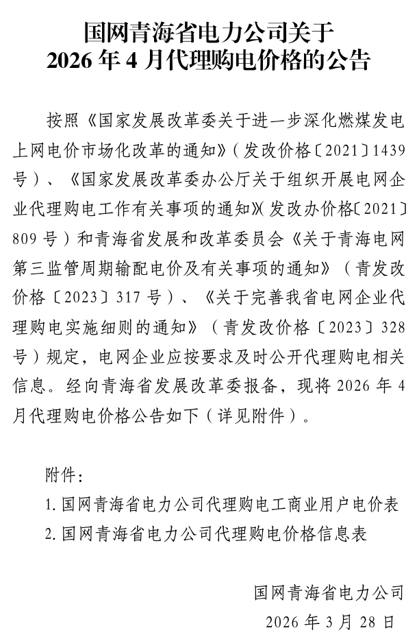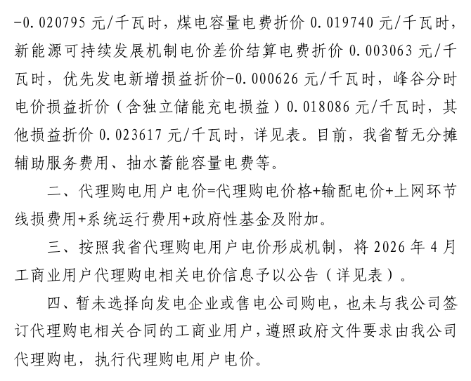 以下为2026年4月各地电网企业代理购电价格表,顺序依次为:江苏、安徽、广东、山东、山西、北京、河北、冀北、浙江、上海、重庆、四川、黑龙江、辽宁、吉林、内蒙古东部、内蒙古电力集团、江西、湖北、湖南、青海、宁夏、陕西、天津、甘肃、新疆、广西、海南、云南、贵州、深圳、福建。(河南暂未公布)