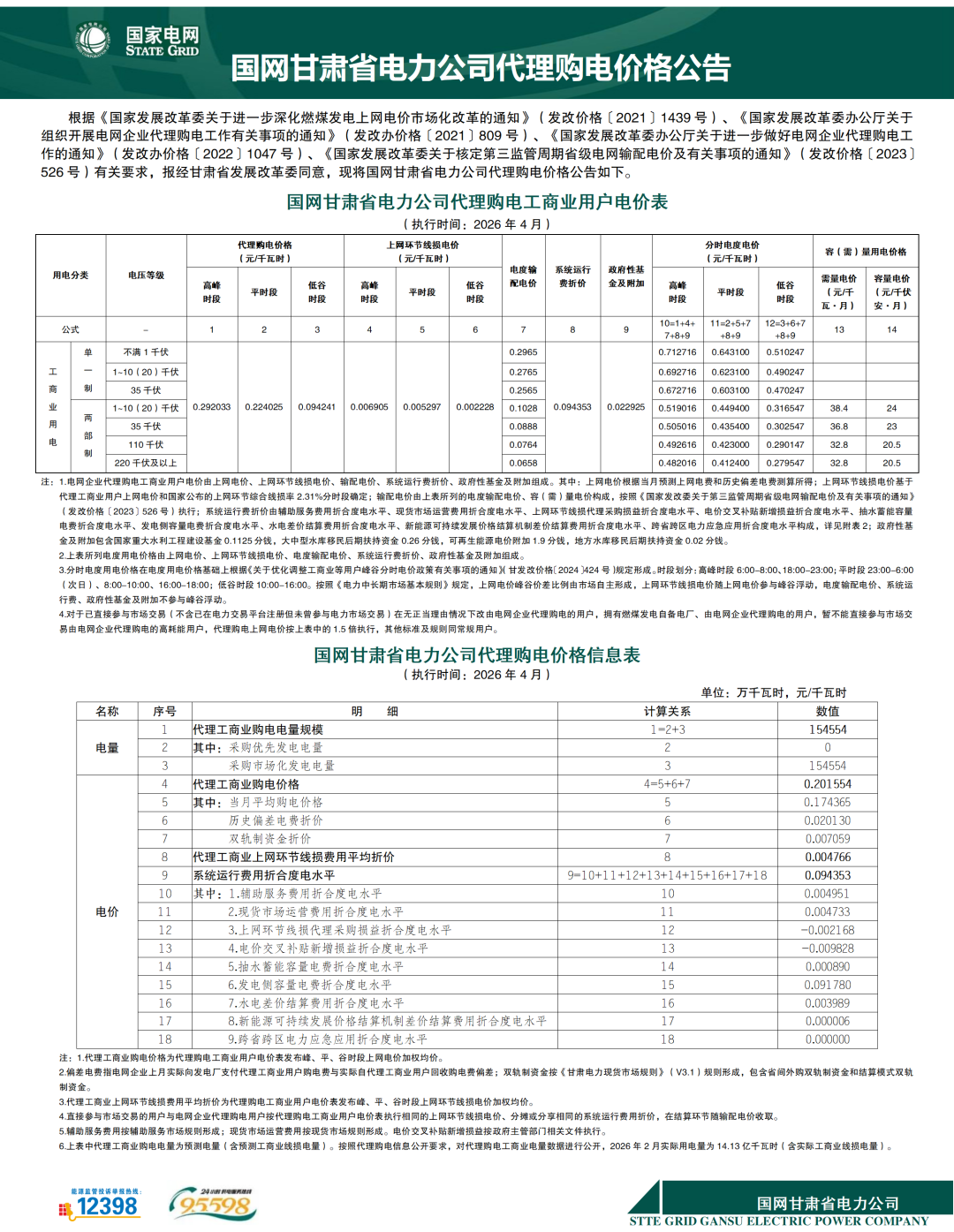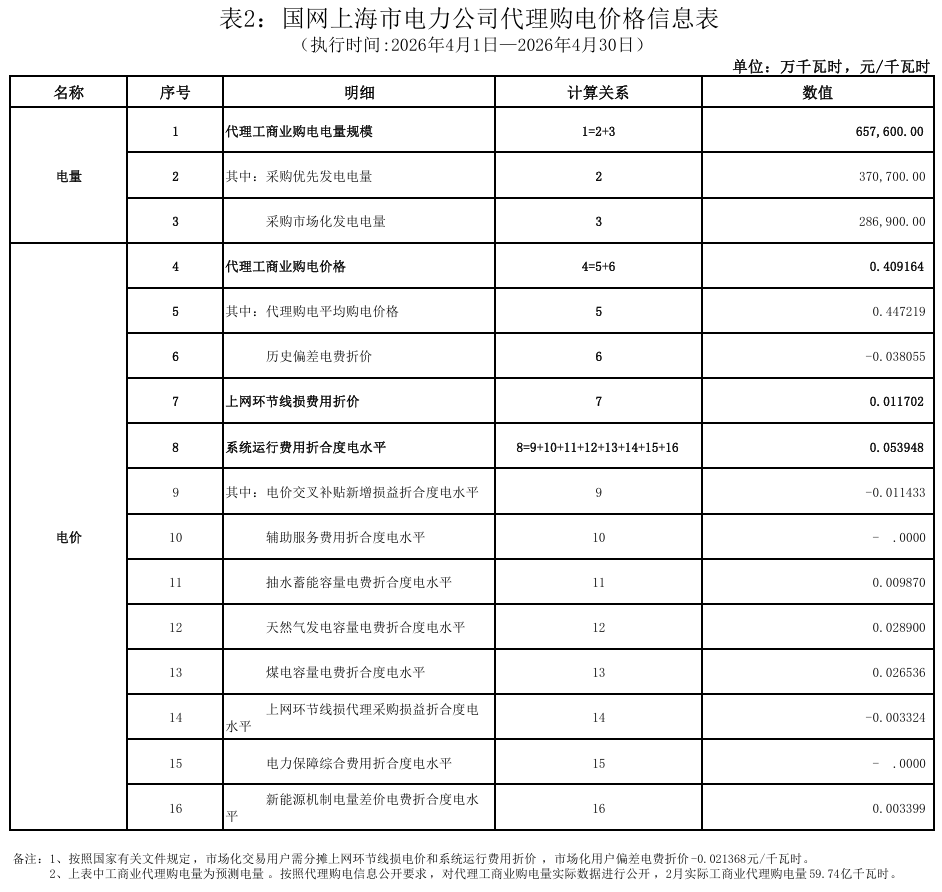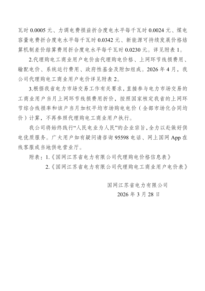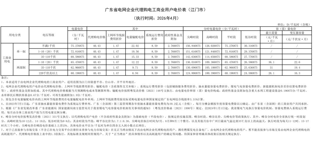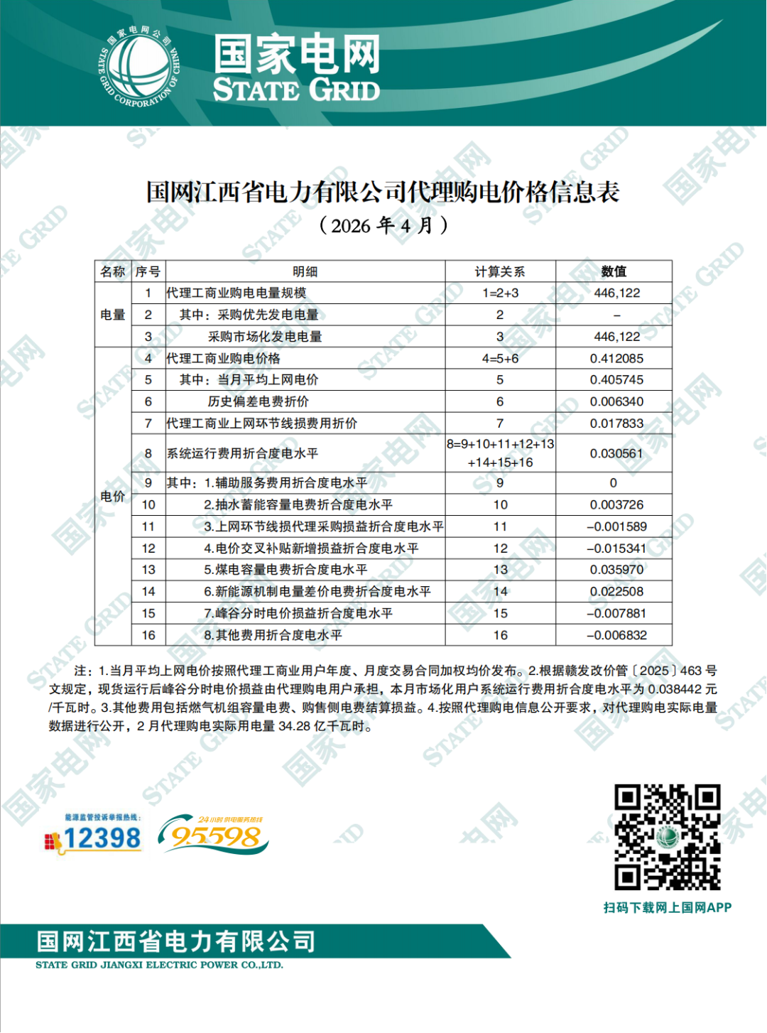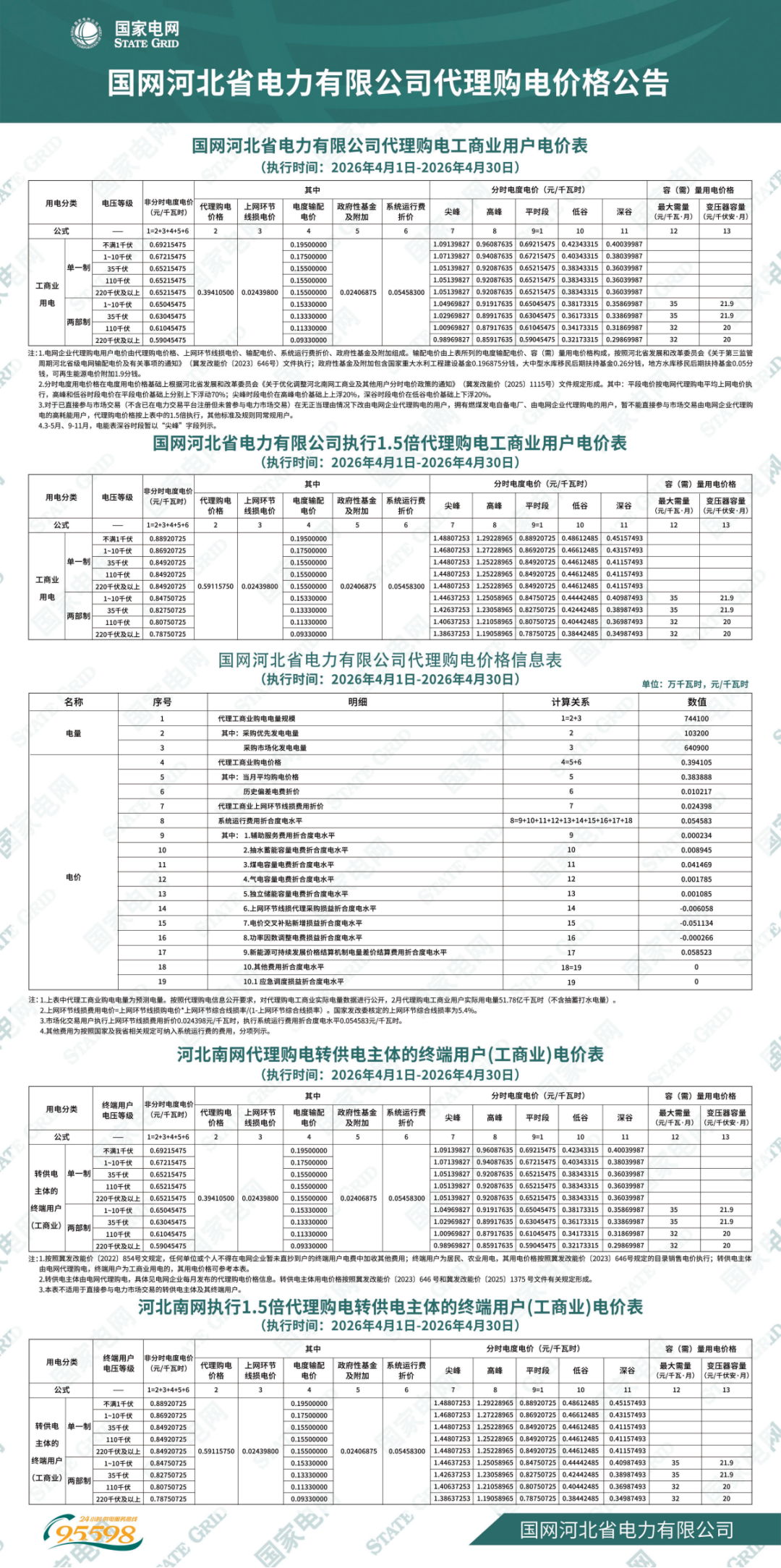 以下为2026年4月各地电网企业代理购电价格表,顺序依次为:江苏、安徽、广东、山东、山西、北京、河北、冀北、浙江、上海、重庆、四川、黑龙江、辽宁、吉林、内蒙古东部、内蒙古电力集团、江西、湖北、湖南、青海、宁夏、陕西、天津、甘肃、新疆、广西、海南、云南、贵州、深圳、福建。(河南暂未公布)