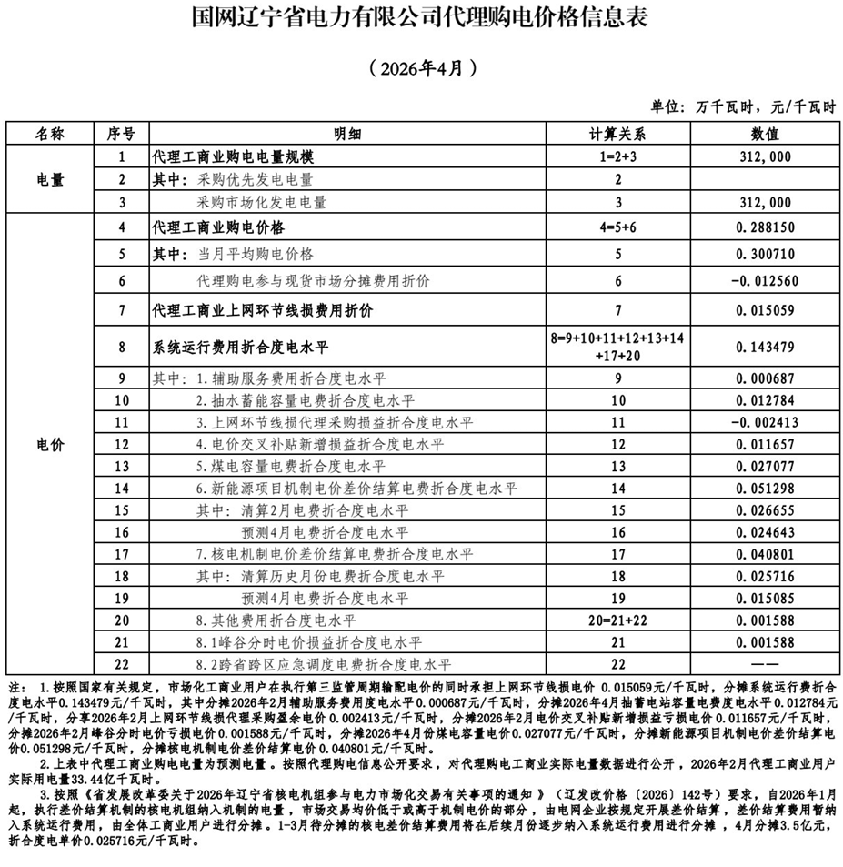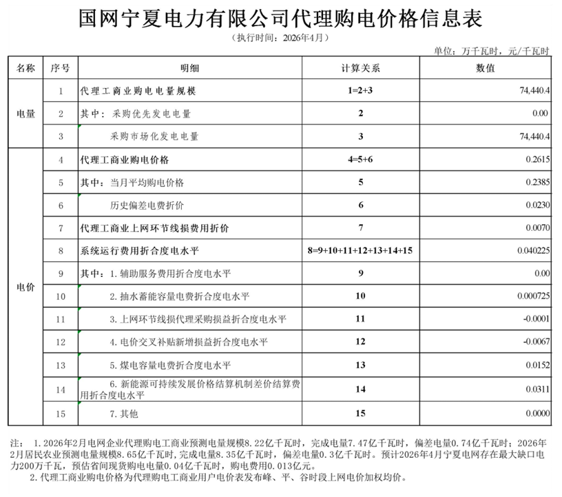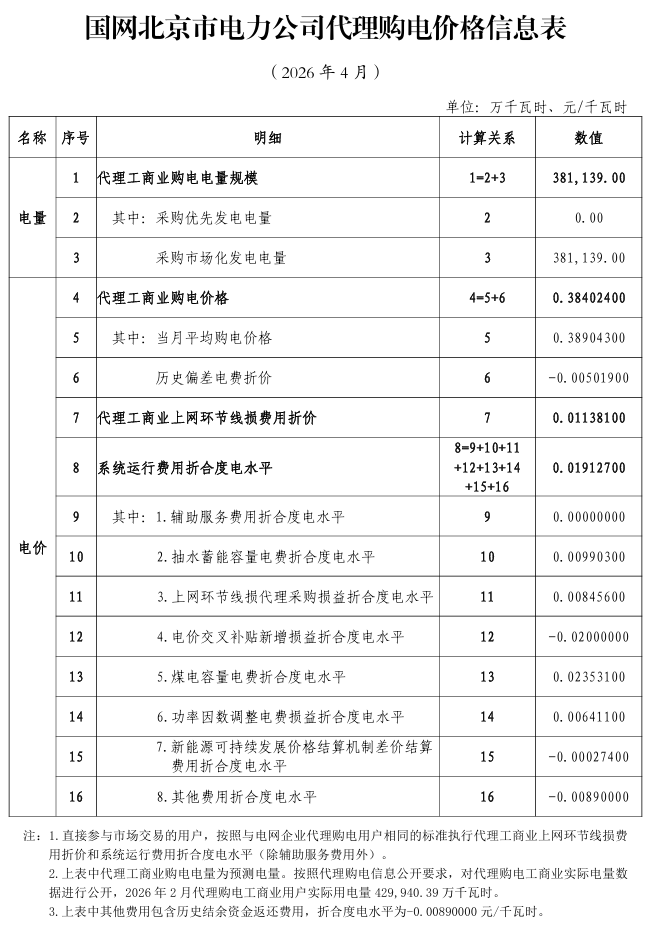北极星电力市场网获悉,近日,全国各地2026年4月电网企业代理购电价格陆续公布。北极星电力市场网汇总了2025年9月-2026年4月各地电网企业代理购电价格,如下表所示:
