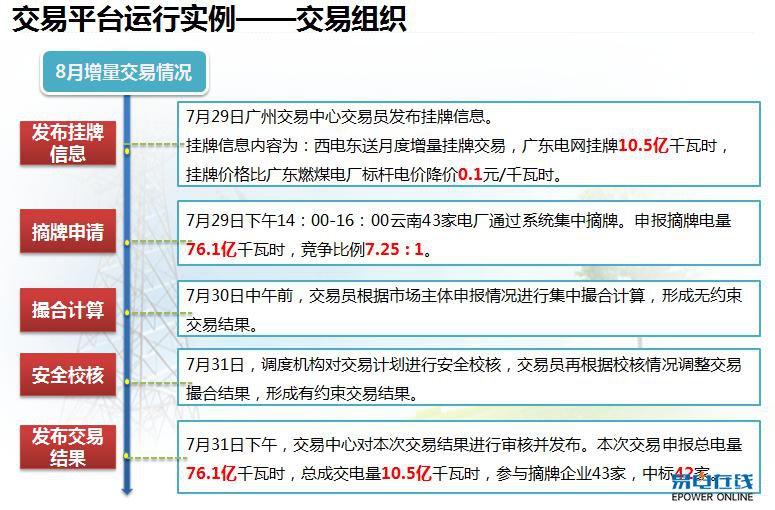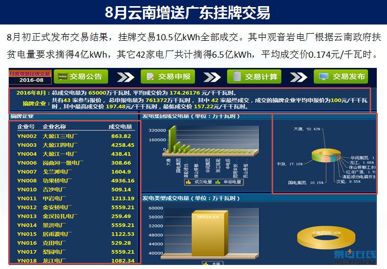 组织西电东送交易是广州电力交易中心的重要职能。2016年1-8月,累计组织西电东送交易电量1281.41亿千瓦时,同比增长6.1%,较年度计划增送104.4亿千瓦时。在完成西电东送年度计划的基础上,充分挖掘通道富余能力,通过竞争方式组织云南增送广东省间市场化交易电量33.5亿千瓦时,促进西部富余水电消纳。3、5、6、7、8月份云南增送市场化交易落地价格较广东燃煤标杆电价低7-10分/千瓦时,电费降幅累计3.2亿元。降幅电费将按照广东省政府有关部门制定的规则进行分配,全部用于补偿广东省内受影响发电企业。