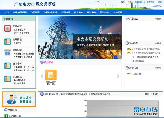 根据广州电力交易中心的职能定位,交易中心提前着手建设先进的交易系统平台。系统平台于2015年8月正式立项,12月份完成招标工作,今年3月开始项目调研并进行开发,目前系统已上线运行,支持市场主体的注册、省间挂牌交易组织以及交易结算等核心功能,已有35个发电企业在系统上进行了注册,并组织8-9月电力交易。