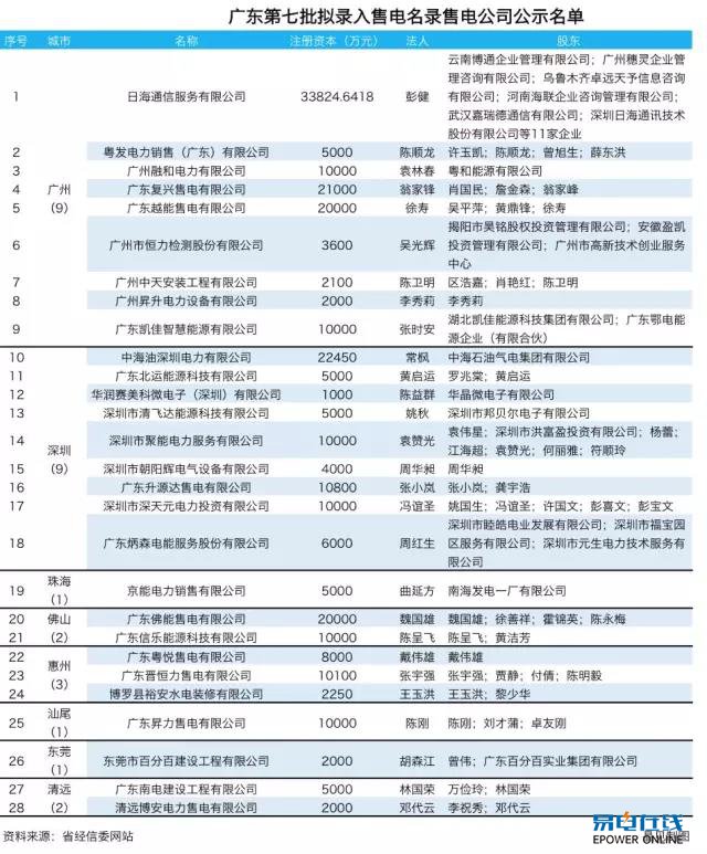 2017年1月24日,广东省经信委网站发布了第七批售电公司的售电名单。