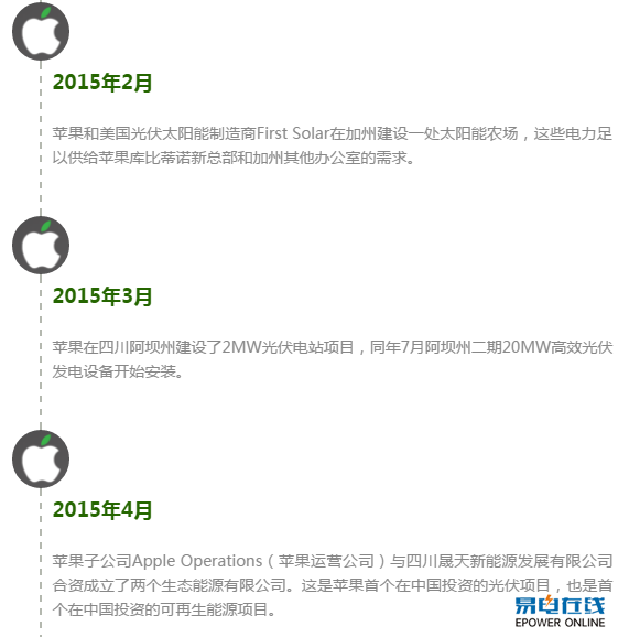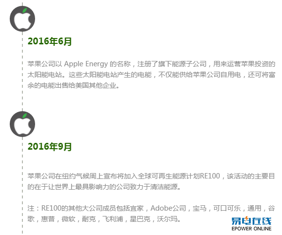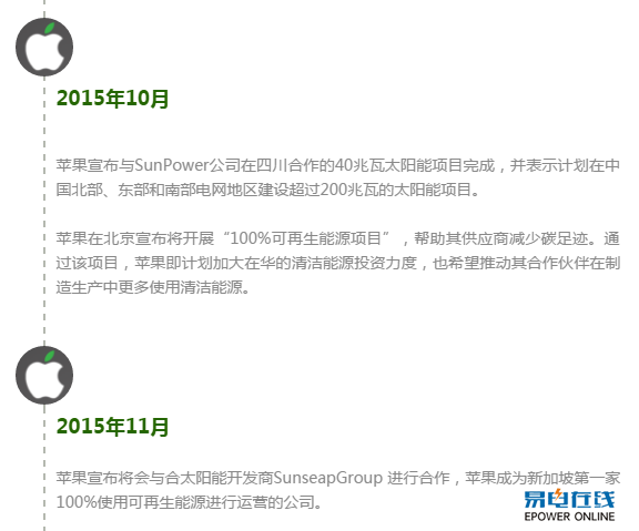 无所不能梳理了一些苹果在可再生能源领域的大事件: